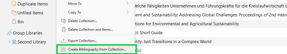 Zotero also offers the possibility to prepare a comprehensive bibliography (report).